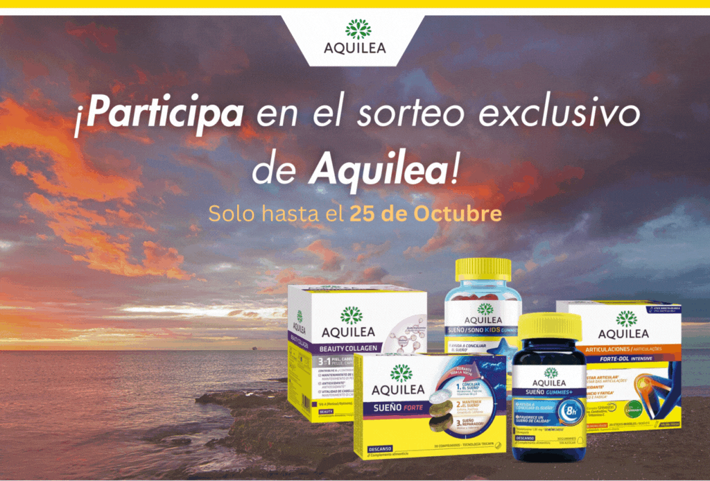 🎁Llévate un pack de productos de Aquilea: Aquilea Sueño Forte, Aquilea Sueño Gummies+, Aquilea Sueño Gummies Kids, Aquilea Beauty Collagen y Aquilea Forte-dol Intensive.